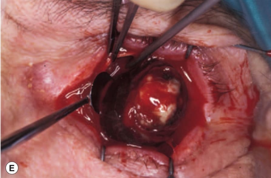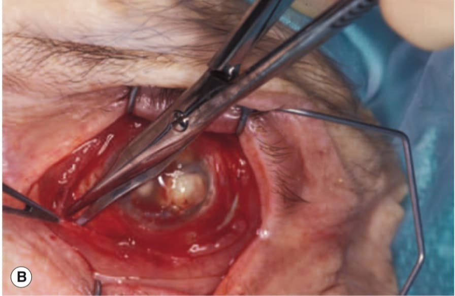 Евісцерація - це хірургічне втручання, під час якого здійснюється видалення всіх внутрішніх структур очного яблука, включаючи склисте тіло, судинну оболонку, сітківку, а також рогівку. При цьому збереженою залишається склера та окорухові мʼязи.