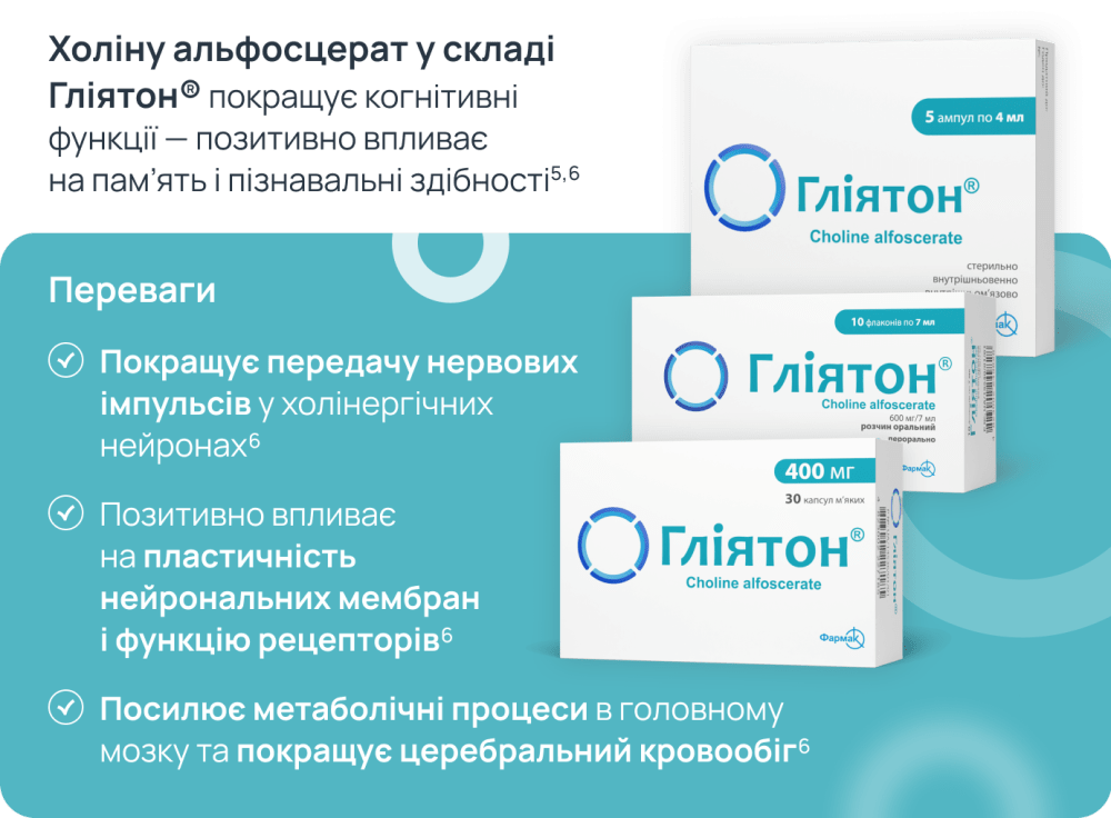 Холіну альфосцерат у складі Гліятон® покращує когнітивні функції — позитивно впливає на пам’ять та пізнавальні здібності5