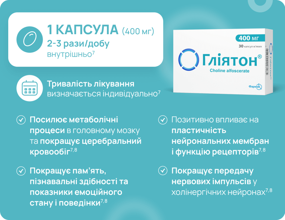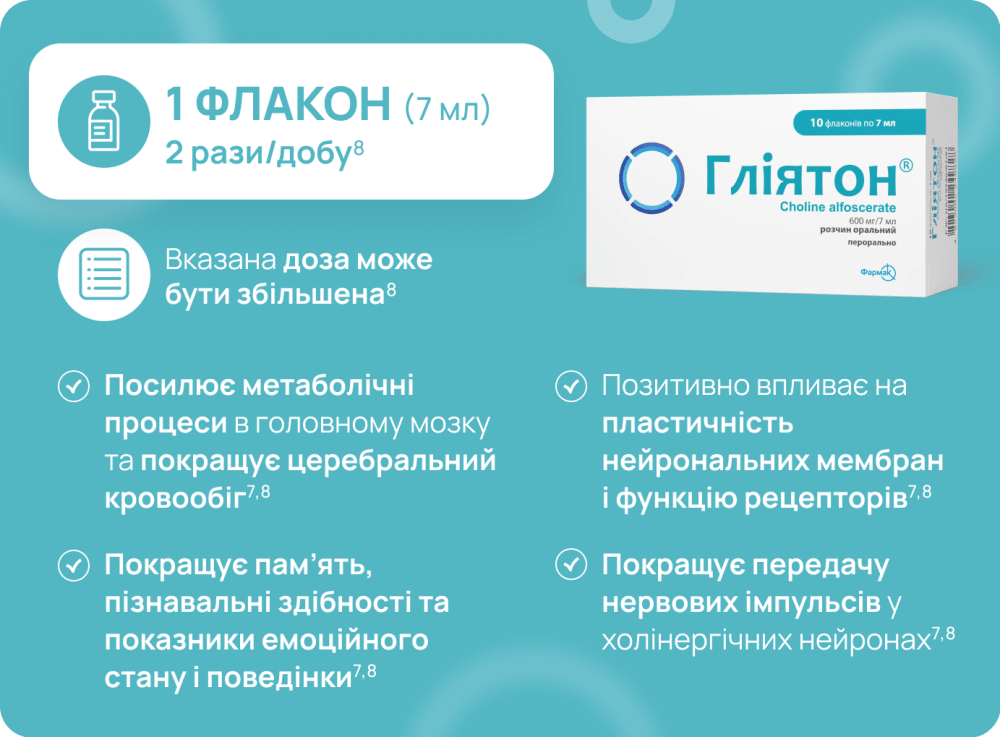 Лікарський засіб Гліятон®, що містить холіну альфосцерат, сприяє відновленню мовлення, продуктивного мислення та когнітивних функцій у післяінсультних пацієнтів5.