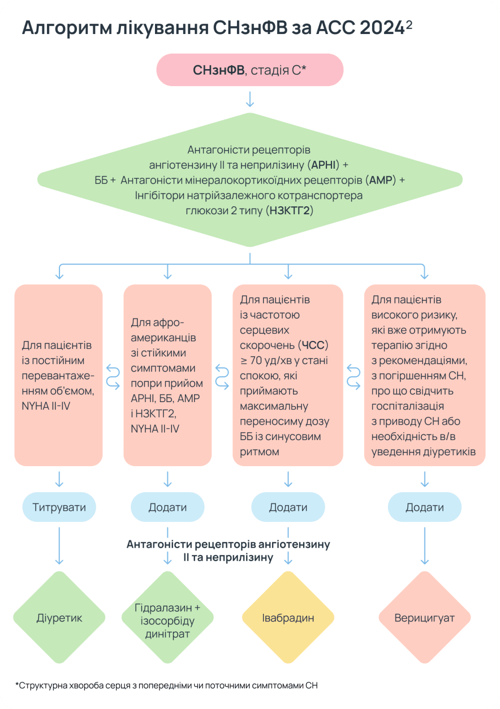 Пропонуємо ознайомитися з алгоритмом лікування СНзнФВ згідно з останніми рекомендаціями ACC2.