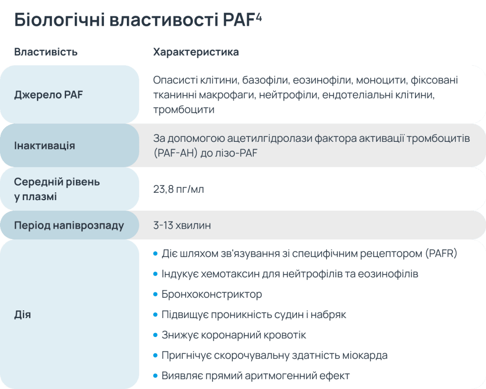 В огляді Pałgan K. та співавторів зазначено, що PAF належить до групи факторів, які підвищують гіперреактивність бронхіального дерева, а його синтез посилюється в клітинах запалення під впливом інгаляційних алергенів4.