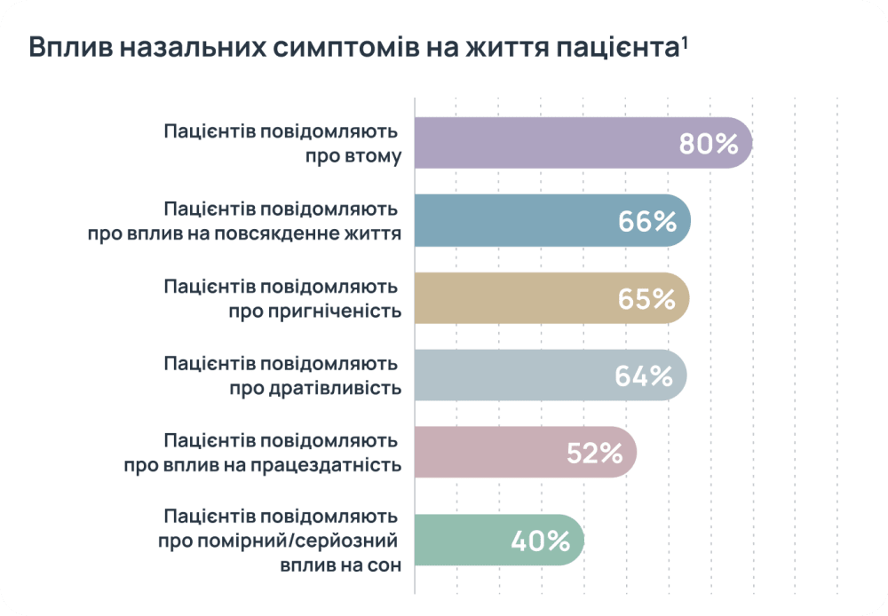 Для пацієнта важливою перевагою будь-якого ЛЗ, що застосовується в лікуванні АР, є швидке полегшення назальних симптомів і можливість повернення до звичного способу життя1.