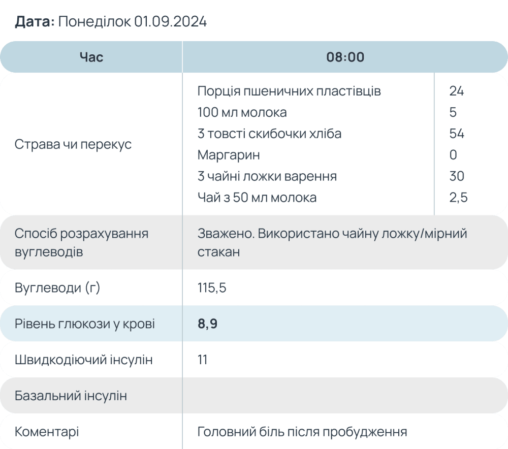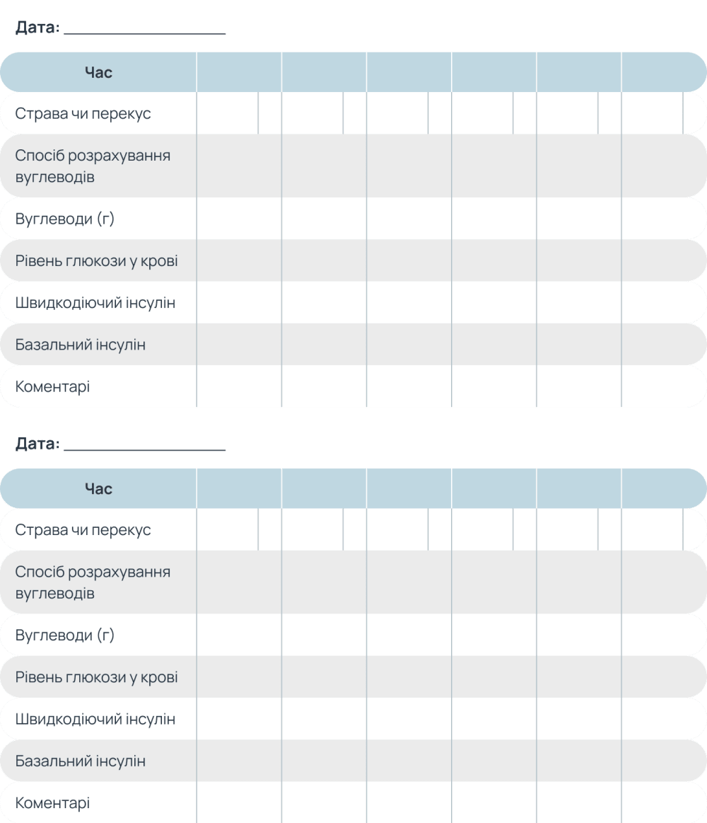 Щоденник харчування для пацієнтів із діабетом: шаблон для заповнення