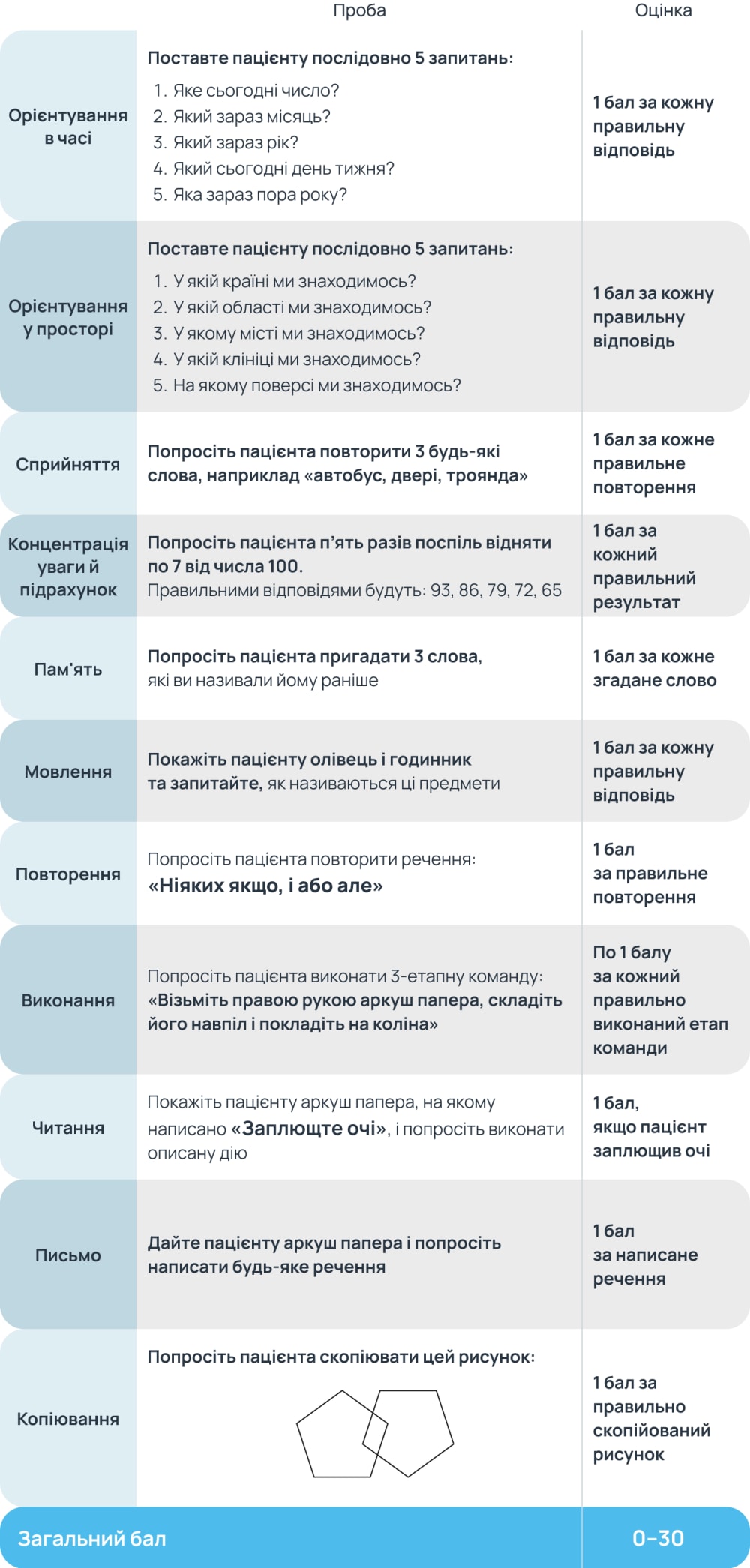 Швидке оцінювання когнітивного статусу пацієнта перед операцією