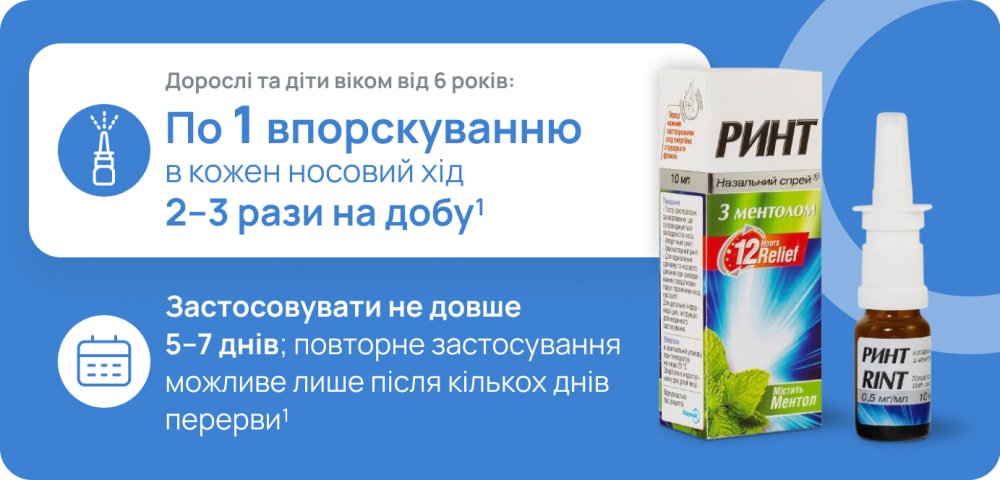 Ринт назальний спрей з ментолом відновлює носове дихання та полегшує симптоми закладеності1
