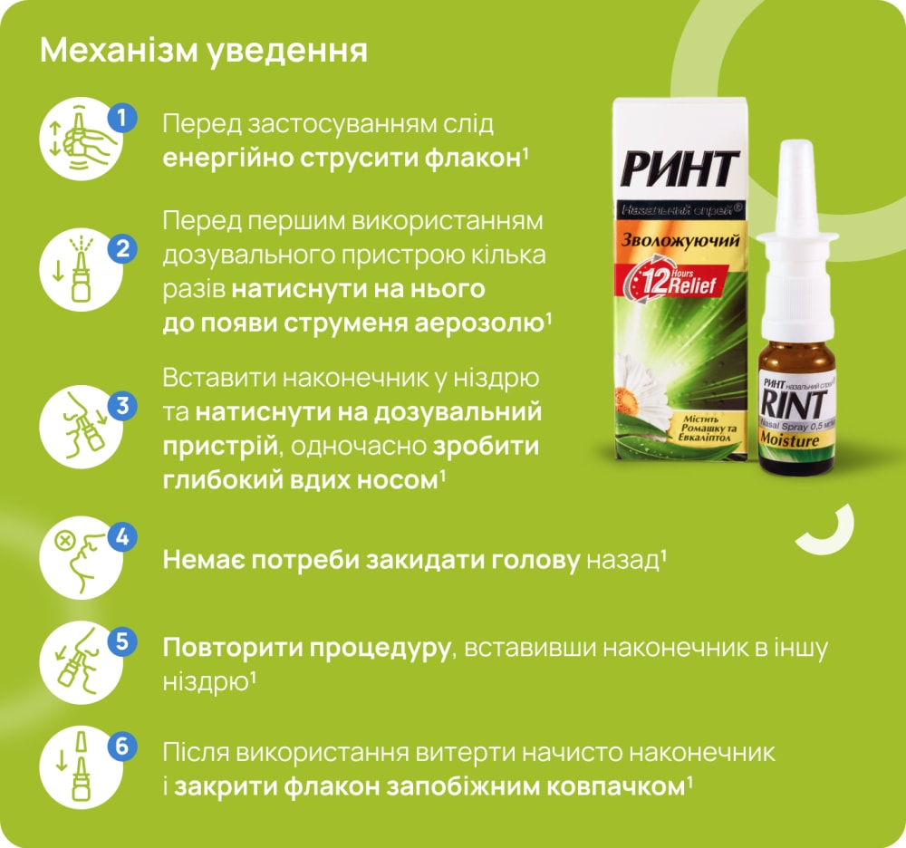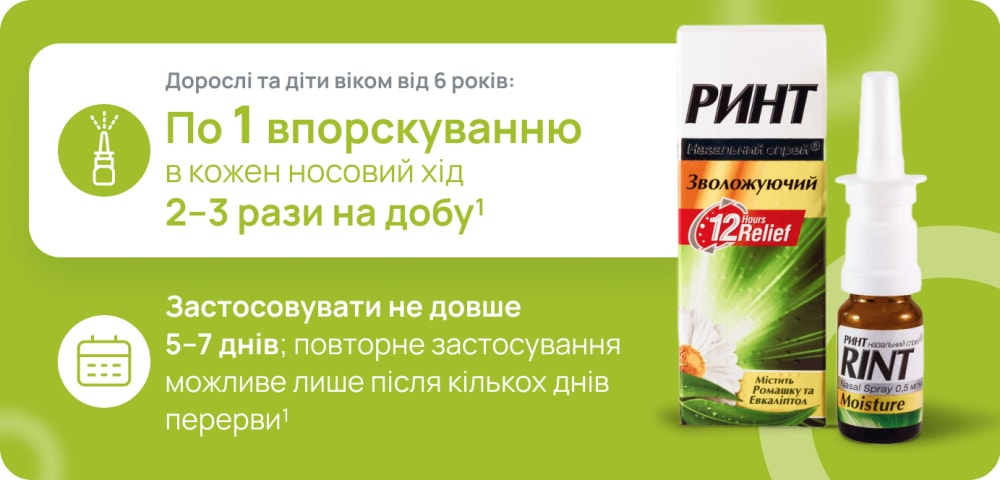 Ринт назальний спрей зволожуючий відновлює носове дихання та полегшує симптоми закладеності1