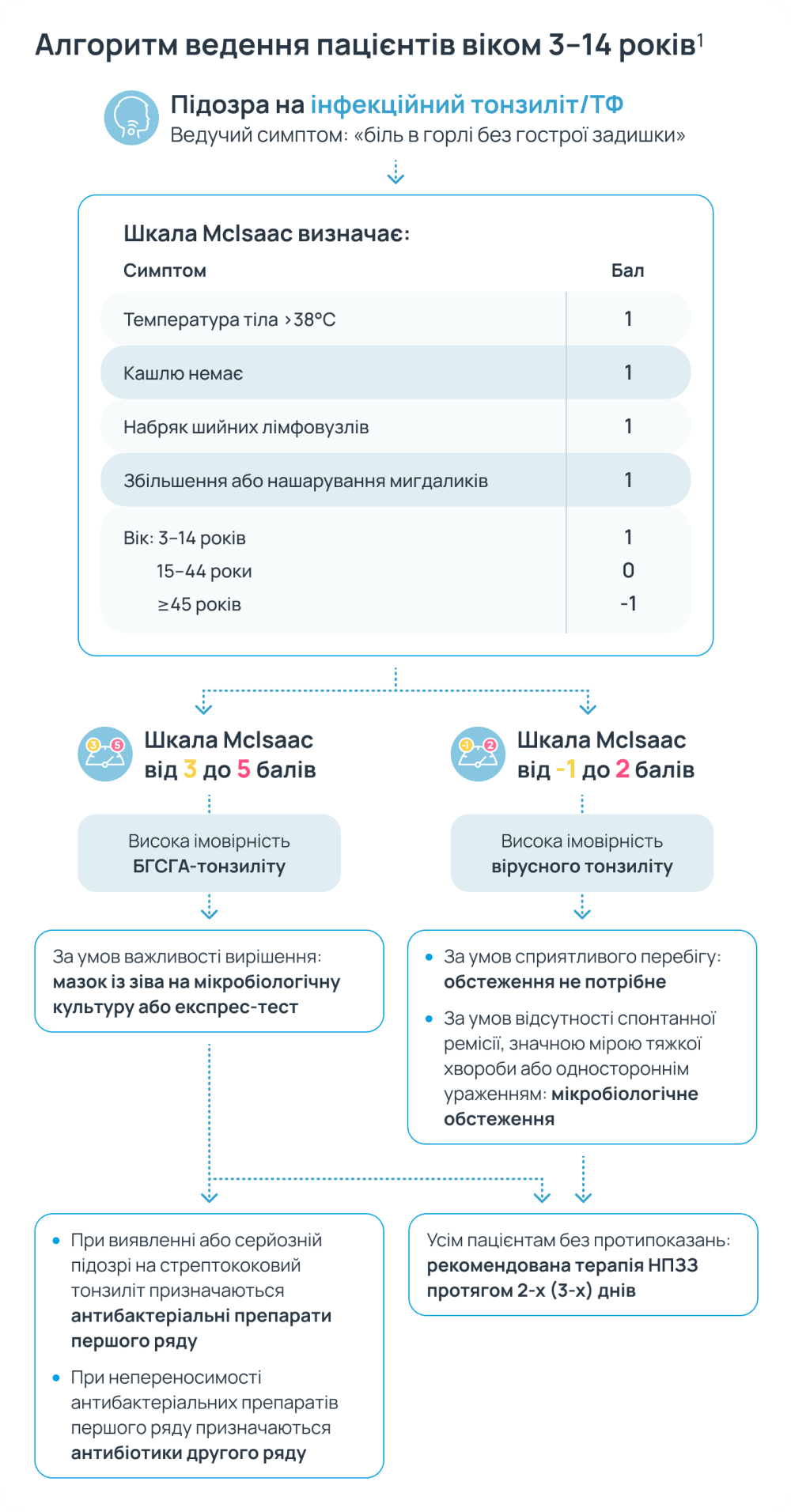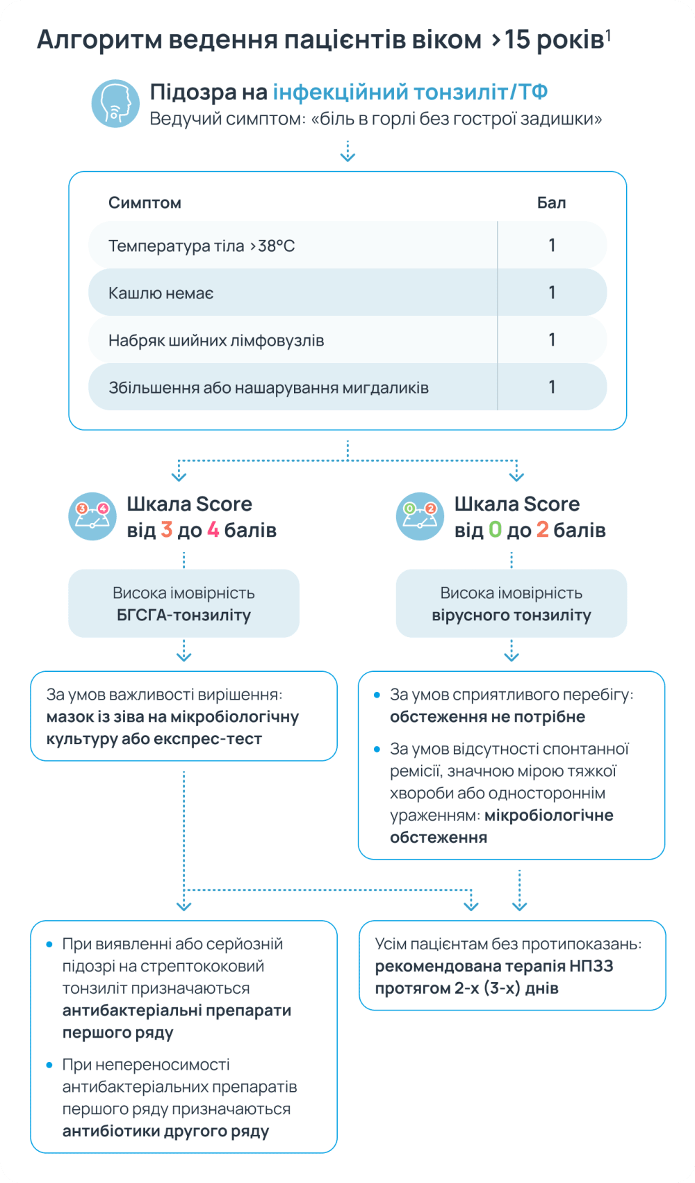 Представлено алгоритм первинної діагностики гострого тонзиліту та інформація для пацієнтів