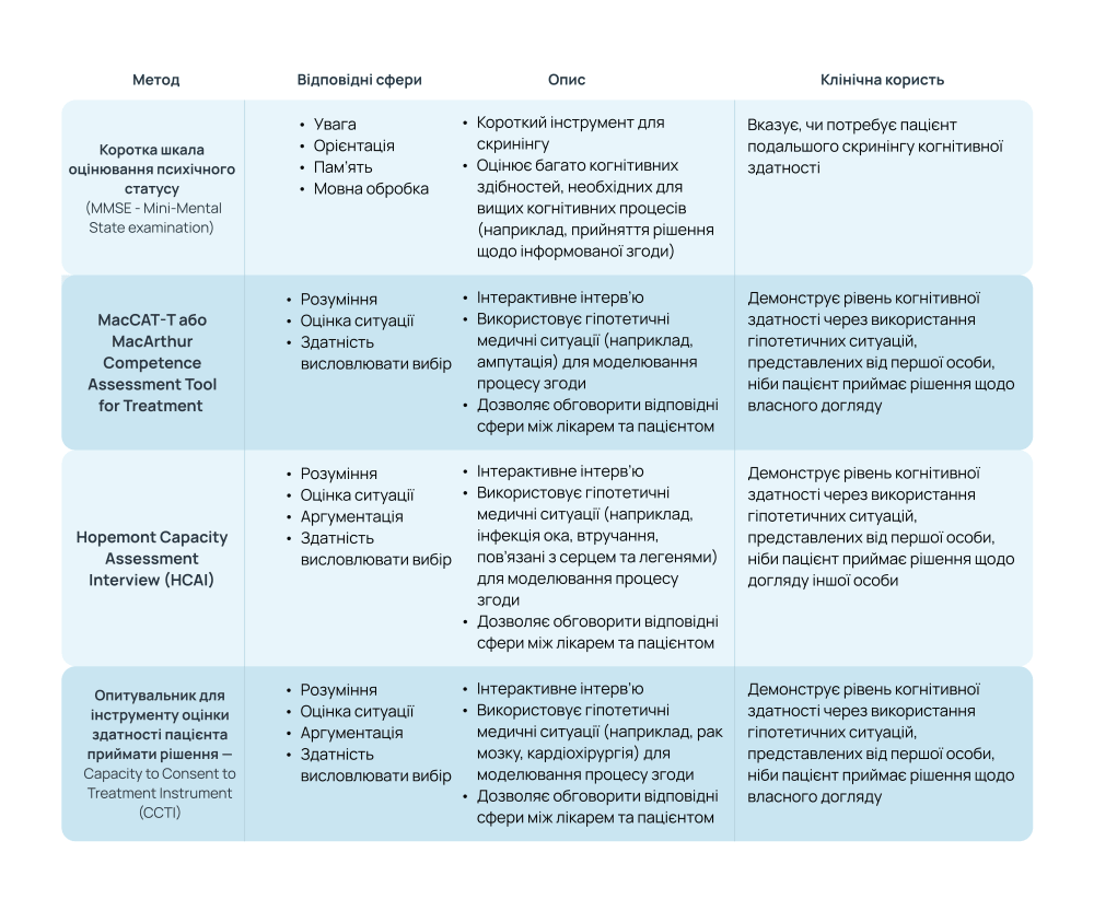 Довідка від MedHubFarmak.com щодо методів оцінки здатності приймати рішення 👇🏻